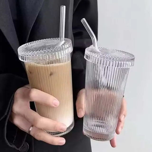 قشة زجاجية عريضة مناسبة لشاي الفقاعات، والعصائر، أو ميلك شيك.