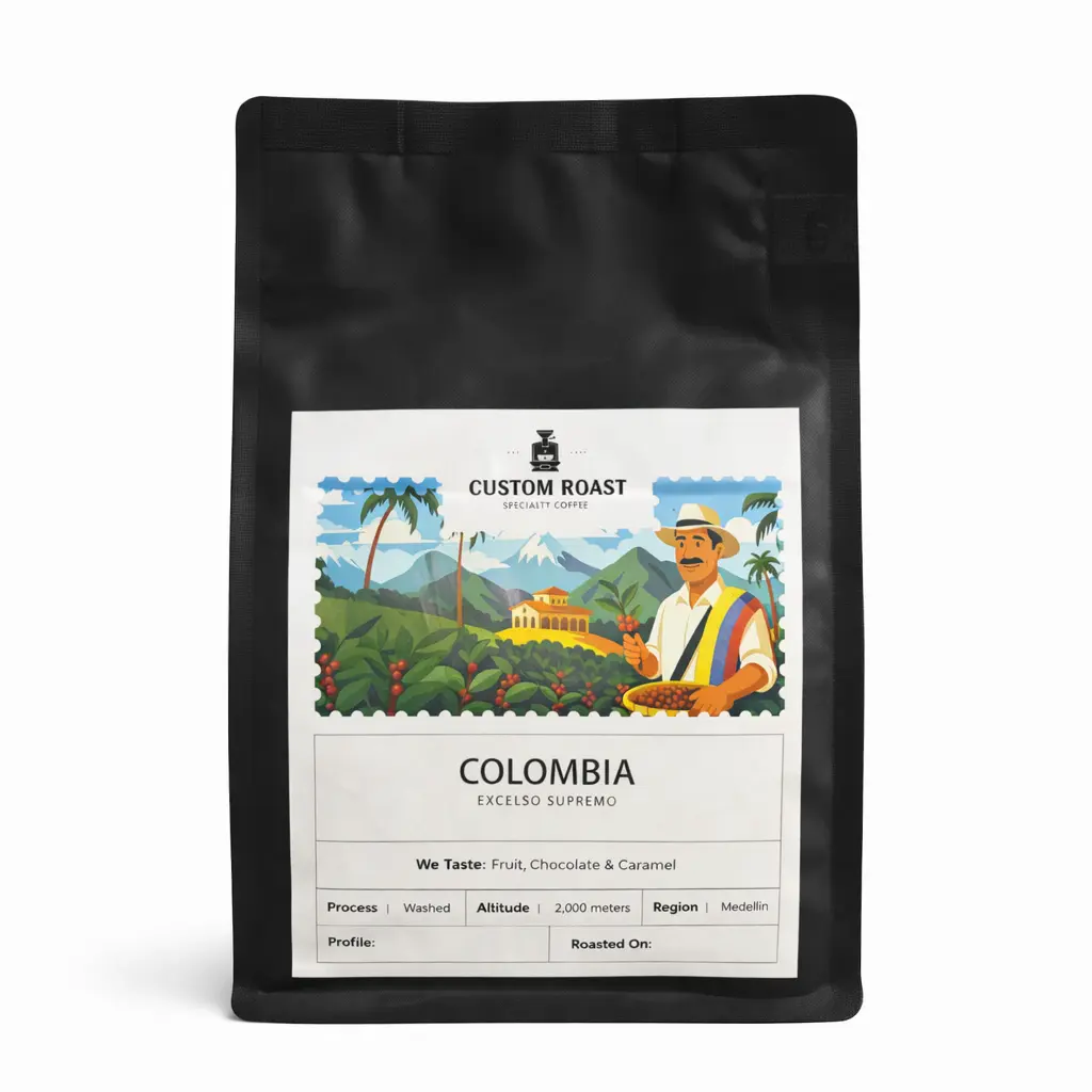 اكتشف المذاق النابض بالحياة والراقي لـ كولومبيا إكسيلسو سوبريمو, ، منتج فاخر قهوة مختصة تشتهر بتوازنها الاستثنائي، وطابعها المشرق، ولمستها النهائية الناعمة. مصدرها مرتفعات ميديلين، كولومبيا, يمثل هذا النوع من القهوة براعة صناعة القهوة الكولومبية.